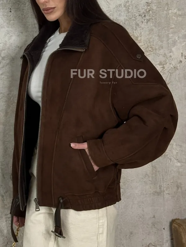 Дубленка - бомбер на молнии из овчины MERINO 101714