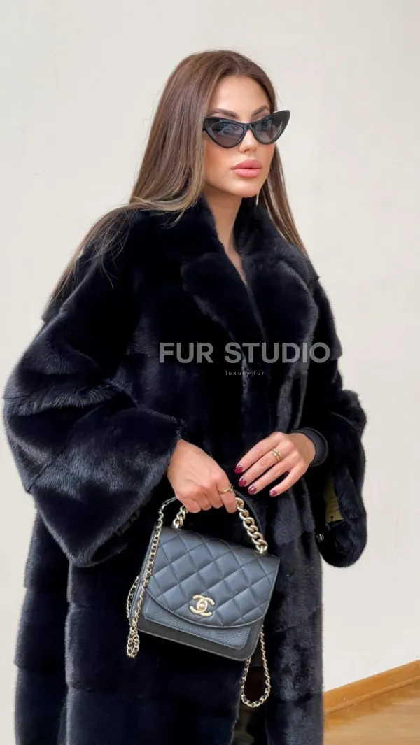 Мех данной шубы аукционная норка , цвет синий. Предлагается в размерах от 48 до 50. Длина модели 95-100 см, что выгодно подчеркивает фигуру девушек. Эта модель идеально подойдет для девушек и женщин, предпочитающих роскошные натуральные меха.
