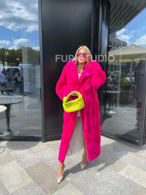 Меховой пояс выгодно очертит талию, подчеркивая ее изящество. Удобный воротник сделает акцент на изгибах шеи. Широкие манжеты подчеркивают тонкость кистей. Добавьте в образ оригинальную сумочку, и вы будете выглядеть великолепно. Купить норковую шубу в цвете фуксия могут позволить девушки, которые любят экспериментировать и удивлять.