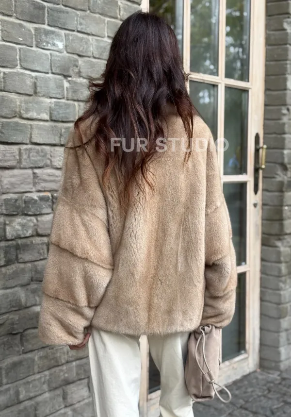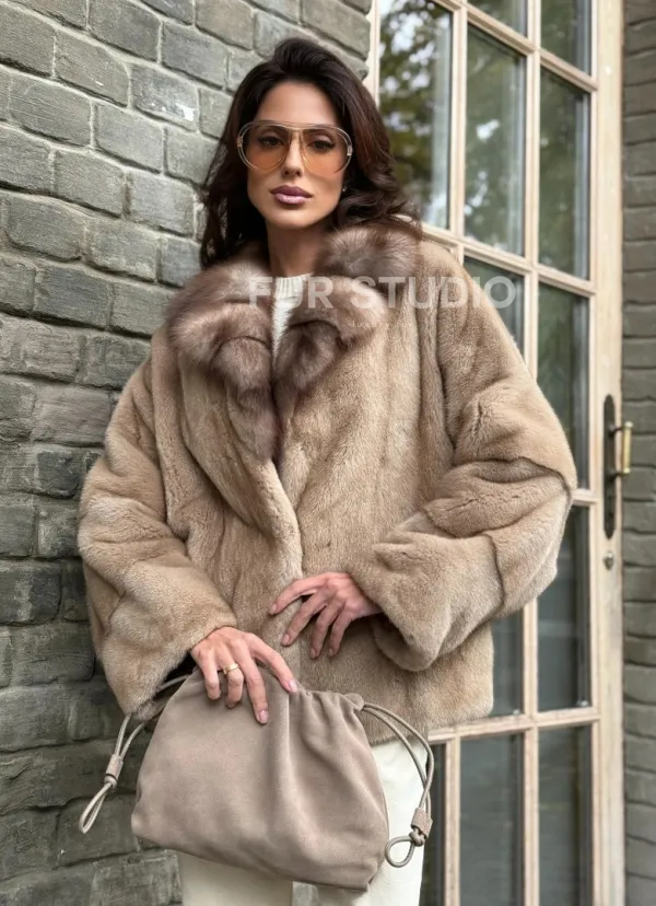Мех данной шубы аукционная норка , цвет бежевый. Предлагается в размерах от 42 до 52. Длина модели 60-65 см, что выгодно подчеркивает фигуру девушек. Эта модель идеально подойдет для девушек и женщин, предпочитающих роскошные натуральные меха.