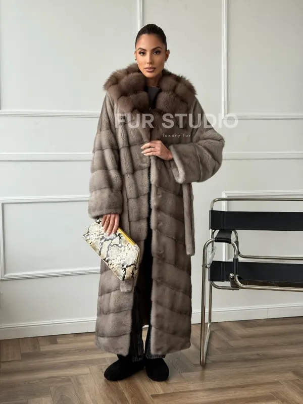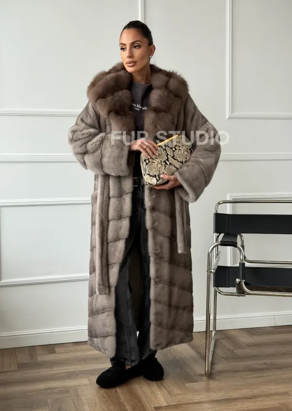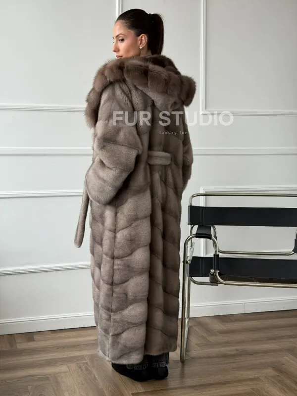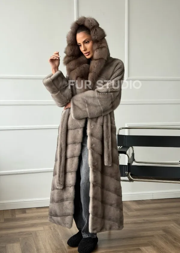 Шуба-кимоно норка в пол с капюшоном куница доступна для покупки в нашем шоуруме Furs Studio в . У нас так же есть доставка во все города России. Добавьте немного роскоши в свой гардероб с этой шубой, которая будет служить вам многие годы.