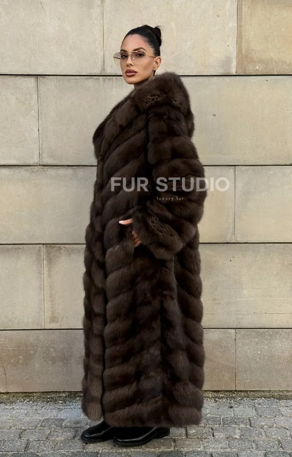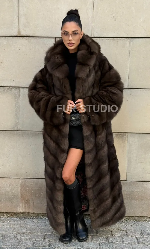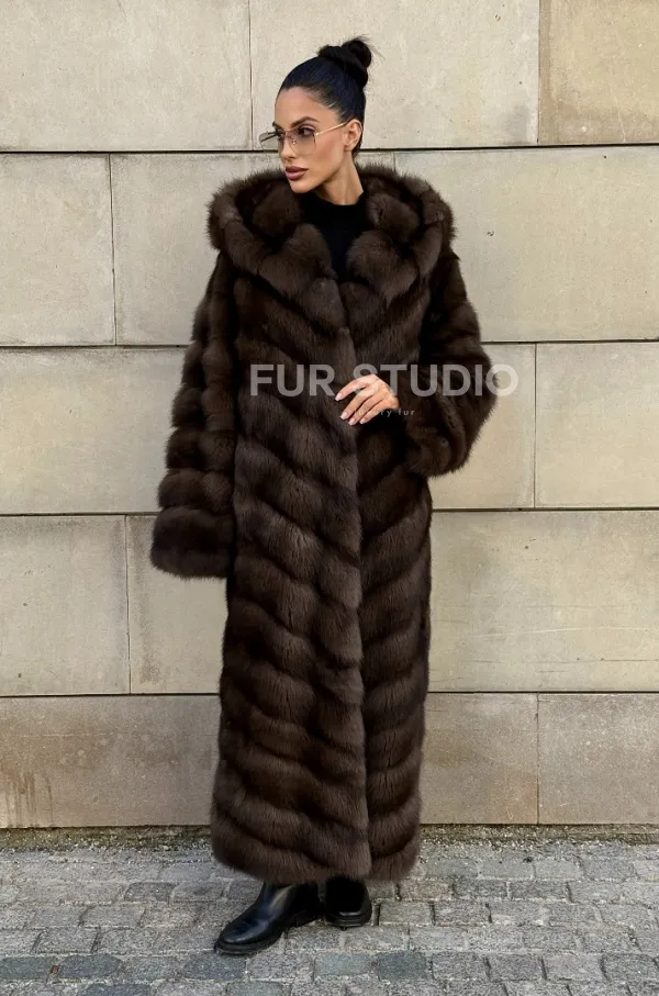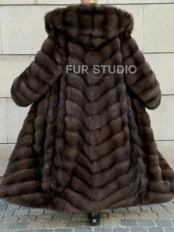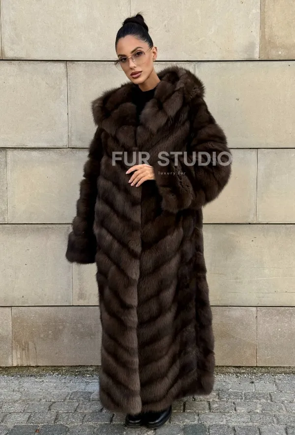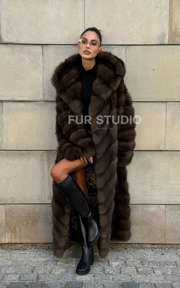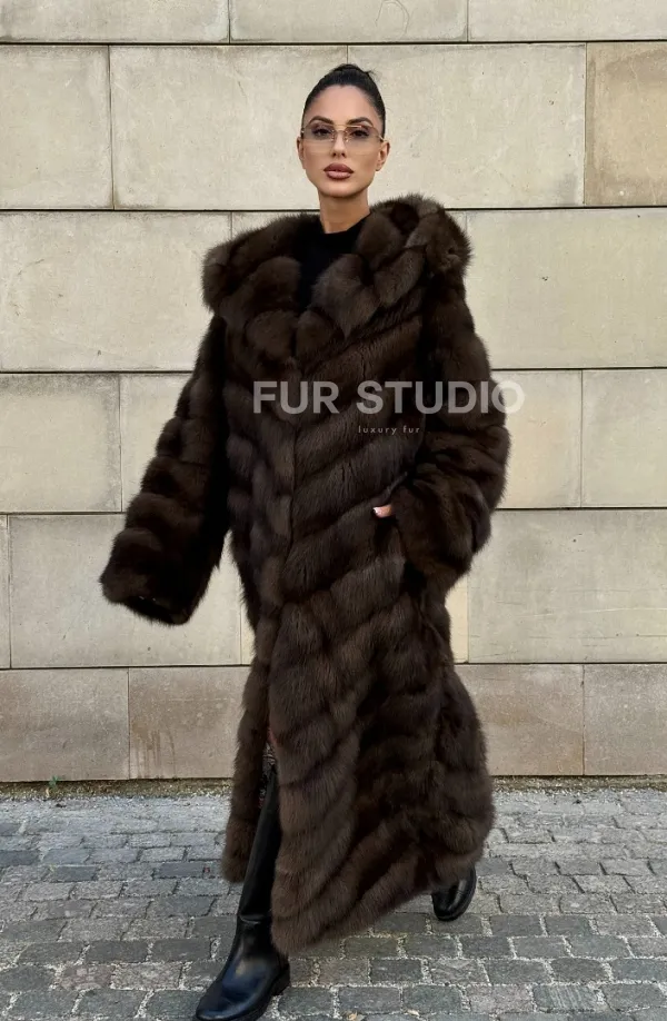 Удлиненная шуба из меха куницы с капюшоном доступна для покупки в нашем шоуруме Furs Studio в . У нас так же есть доставка во все города России. Добавьте немного роскоши в свой гардероб с этой шубой, которая будет служить вам многие годы.